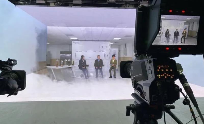 這個神奇的演播室,可以讓人像坐上時空穿梭機(jī),虛擬空間與現(xiàn)實世界可以神奇融合,帶你突破時空壁,實現(xiàn)沉浸式聽會+沉浸式聊會。
