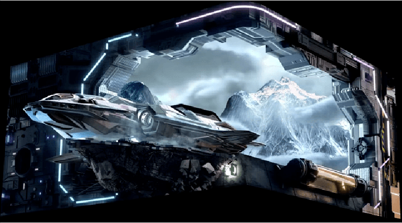 這款大屏總面積達(dá)到660㎡+,將“新媒體+裸眼3D”技術(shù)結(jié)合,顯示效果從常規(guī)畫面直接升級(jí)為高清裸眼3D,大屏以“灣區(qū)樞紐,萬象羅湖”為主題,未來科幻場(chǎng)景作為載體,在呈現(xiàn)羅湖國貿(mào)、地王等地標(biāo)的同時(shí),將深圳以金色太空之城的展現(xiàn)出來。裸眼3D屏以高刷新、高灰階、高對(duì)比度為優(yōu)勢(shì),給觀眾帶來沉浸式體驗(yàn)效果。