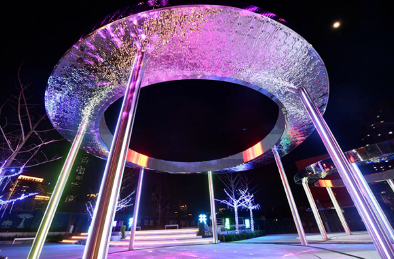 “雙井之光”音樂噴泉,將元宇宙元素與“雙井”兩口井的歷史名稱完美融合,以虛擬投影成像技術(shù),呈現(xiàn)出兩口巨大的“井”的意象;圓形的“井”口內(nèi)壁是由利亞德打造的LED互動(dòng)屏幕,畫面顏色鮮艷,圖像效果逼真,燈光與音樂同時(shí)互動(dòng),LED屏幕畫面不斷流轉(zhuǎn),讓人沉浸式“感受”到四季更替中的雙井美好時(shí)光。雙井之光東側(cè)的“雙井之窗”,是展示窗口,為市民提供豐富的休閑、娛樂、健身等互動(dòng)設(shè)施。28米長(zhǎng)的跑道旁設(shè)有可感應(yīng)的數(shù)字LED互動(dòng)顯示屏,融合互動(dòng)、放映、展示等功能。該顯示屏是利亞德具有超高刷新,高亮度以及高清顯示效果的創(chuàng)意產(chǎn)品,同時(shí)屏幕具備軍工級(jí)全防護(hù)、防水、防潮、防潑濺,適應(yīng)室外復(fù)雜的運(yùn)行環(huán)境。