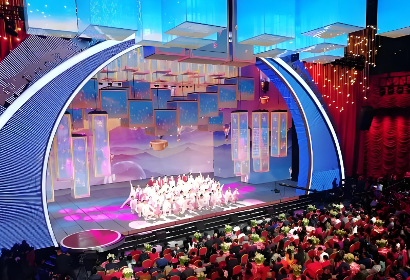 利亞德LED顯示屏憑借其超高分辨率、極致的色彩表現(xiàn)和卓越的顯示效果,在跨年晚會(huì)上大放異彩。這些顯示屏不僅能夠在近距離觀看時(shí)呈現(xiàn)出無(wú)可挑剔的畫面效果,還能通過(guò)創(chuàng)新的拼接技術(shù),實(shí)現(xiàn)多個(gè)顯示模塊的無(wú)縫對(duì)接,從而呈現(xiàn)出一個(gè)完整、統(tǒng)一的顯示畫面。這種技術(shù)優(yōu)勢(shì)在跨年晚會(huì)的舞臺(tái)上尤為明顯,使得舞臺(tái)背景、道具和表演內(nèi)容完美融合,為觀眾帶來(lái)了沉浸式的觀看體驗(yàn)。