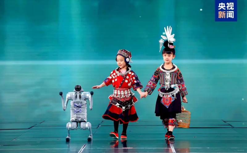 整場晚會以科技為弦,以藝術為歌,采用裸眼3D、AI、XR等多種技術,引入機器人、智能機器狗的創(chuàng)新交互,構建多維感知的藝術場域。